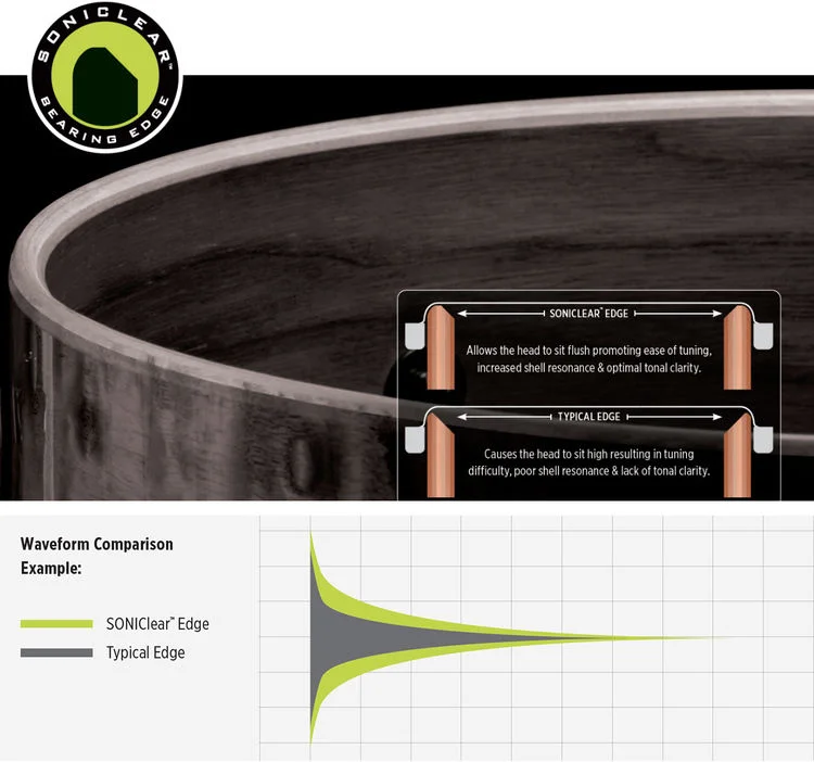 - SONIClear bearing edges with Power Hoops provide a flatter seating for drumheads to help maximize tone and tuning range