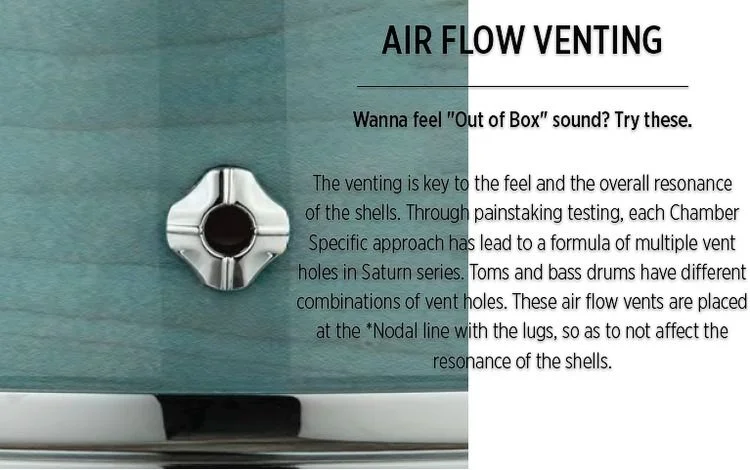 When it comes to drums, feel is every bit as important as tone. The Mapex Saturn VI Studioease shell pack features vents placed along the nodal line of every shell — a concept borrowed from the Black Panther Design Lab. This gives each drum an open, lively response while serving to maximize the shell's natural resonance in any tuning register.