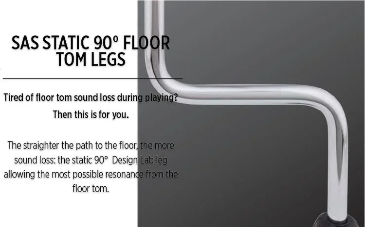 "The shortest path between two points is a straight line." Remember that lesson from geometry class? Archimedes said it. And as it turns out, sound and vibrations work on the same principle. Mapex's SAS floor tom legs feature sharp 90-degree angles to increase distance from the floor to the shell. This allows less of your tom sustain to be absorbed into the floor, which means greater note length and a cleaner soundstage.